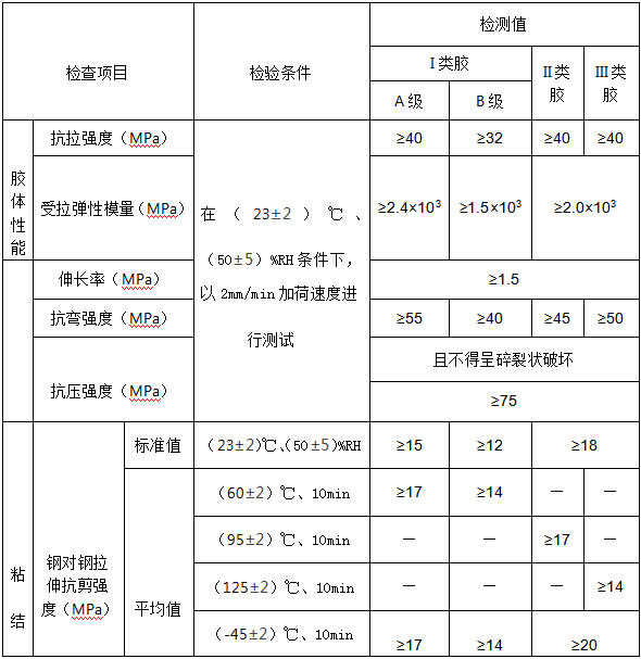 2.、甲組分為灰色粘稠狀膠體,乙組分為黑色粘稠狀膠體,混合后為灰黑色粘稠狀膠體混合物。