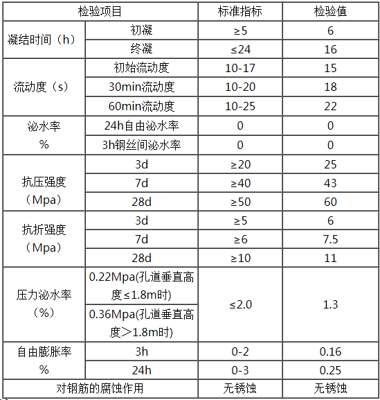 1.流動性好,初始流速小于17s,無收縮、自密實、強度高,不泌水、不分層。