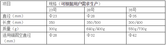 可與金屬或玻璃鋼錨桿配套使用,在地下工程、邊坡支護、立井的裝備安裝、建筑物的構件連接、設備基礎的錨固等均得到廣泛的應用。